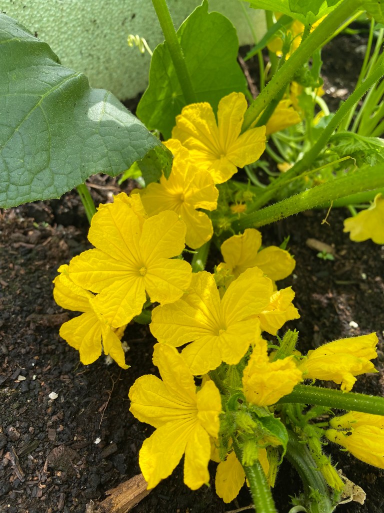 The cucumbers and zucchinis are flowering and the peppers are budding.