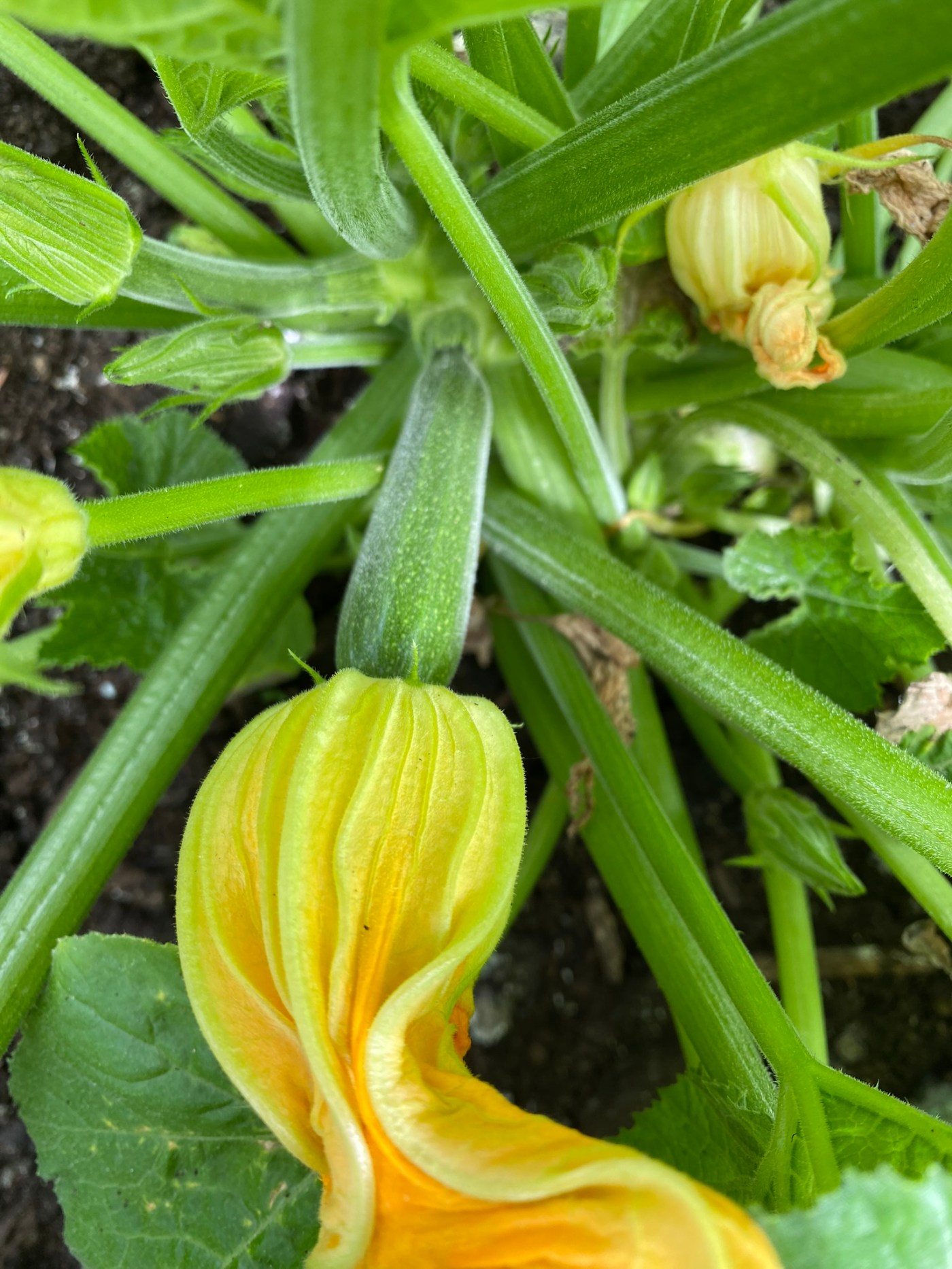 The cucumbers and zucchinis are flowering and the peppers are budding.
